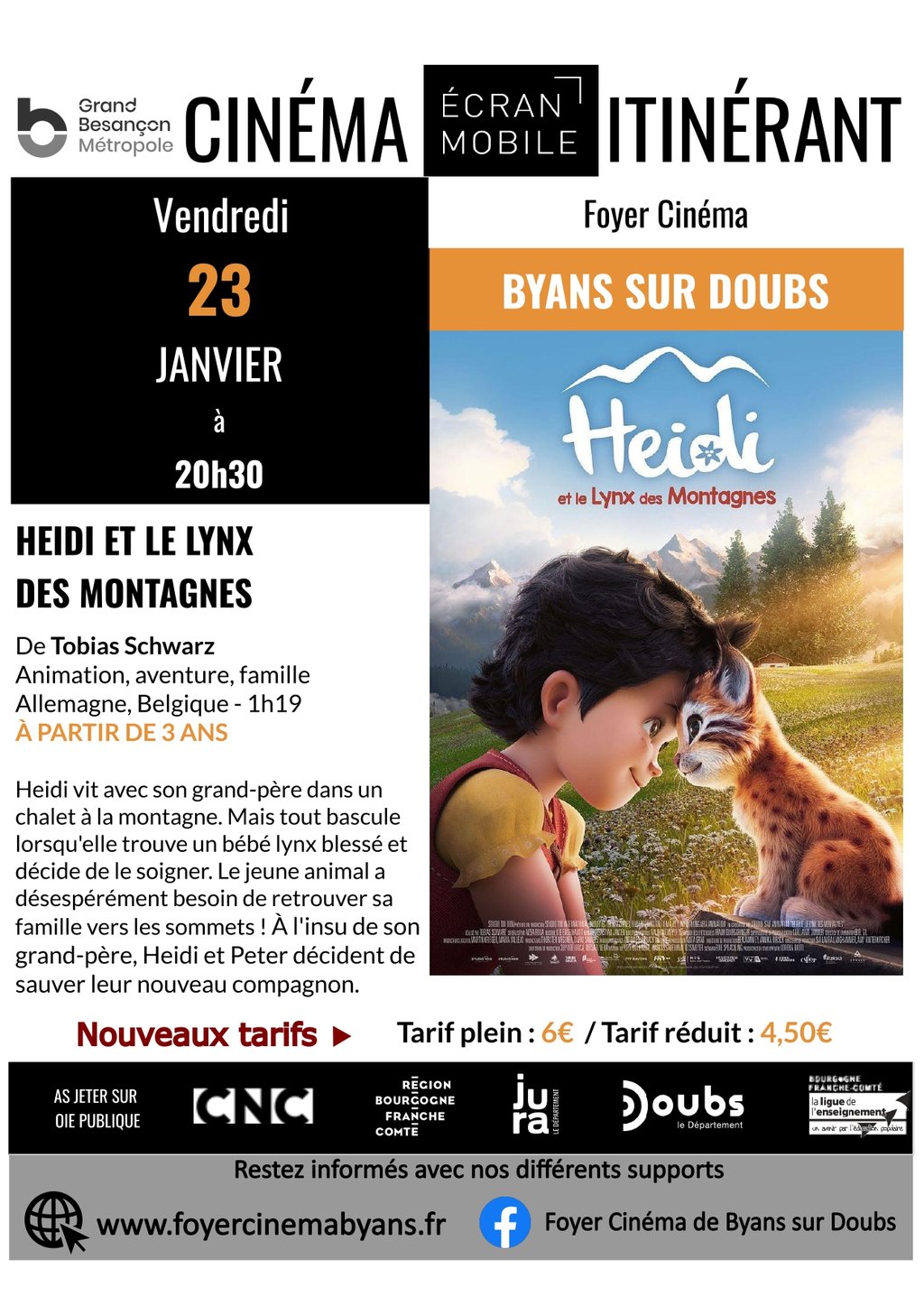 Projection du film d'animation "Heidi et le lynx des montagnes" le vendredi 23 janvier à 20h30 au Foyer Cinéma.